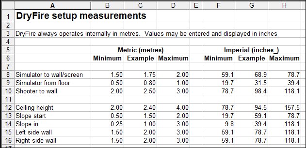 DryFire operates internally in metres (m) (see note below) and values entered in inches are converted to metres when the software is running.