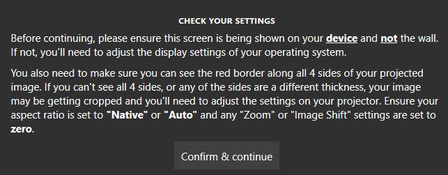 - When you carry out the three step projection setup procedure does the length of the line in the second step vary by more than a millimetre from session to session or time to time? If so, your projector has moved (which explains the change and is OK) or it isn't displaying a consistent image and things won't work properly.